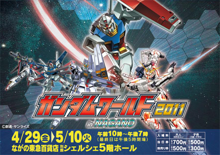 將鋼彈的魅力用展示和影像的方式介紹給大眾的「鋼彈世界2011 in NAGANO」將在黃金週假期4月29日(五)開始到 5月10日(二)為止,於長野縣NAGANO東急百貨店別館Sherushe5樓舉辦。