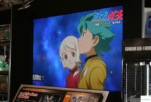 BANDAI攤位裡大幅度的宣傳TV系列最新作『機動戰士鋼彈AGE』,特別是本次活動初次公開的最新PV的前面總是聚集著人潮。