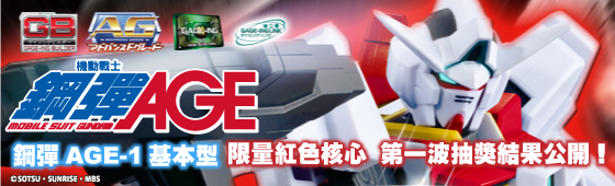「鋼彈AGE 限量紅色核心 抽獎活動」第一波結果揭曉囉!恭喜各位得獎者!獎品將在6月25日那週為大家寄出喔!
