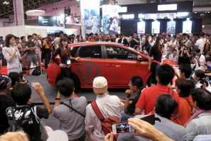 ▲於GUNDAM INFO預告的「夏亞×TOYOTA」全貌終於明朗化!以夏亞為主題的概念車「夏亞專用AURIS」初次亮相,攤位被眾多到場者擠得水洩不通。