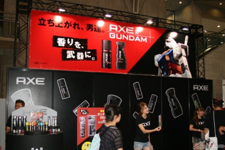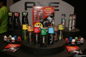 「AXE」的攤位有免費發送沐浴乳的試用品,並公開9月開始的合作活動。