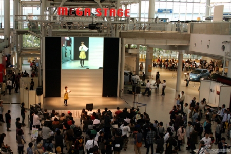 舉辦豪華舞台的「MEGA STAGE」,就在離話題中的「夏亞專用AURIS CONCEPT」展示區非常近的地方,吸引了大量觀眾聚集。