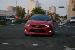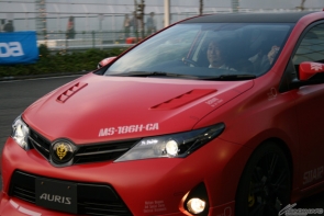 首次公開行車的「夏亞專用AURIS」,柏油路的黑色與紅色的車身產生強烈的對比,也讓人見識到與在活動會場展示時不同的魅力。