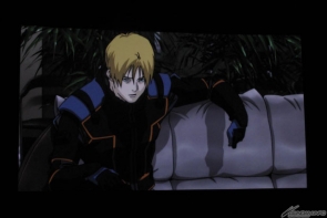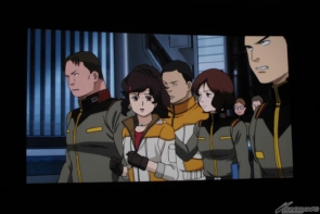 在大家越來越期待的狀況下,上映開始前先由SUNRISE的小形尚弘製作人來向現場所有人問候,小形製作人表示在試映會開始之前,負責『鋼彈UC』故事撰寫的福井晴敏就充滿感慨地說:「說不定在數十年前,我就是在這間電影院看“逆襲的夏亞”啊」。