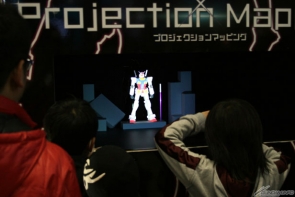 1/1比例的鋼彈頭部,以及光和鋼彈模型搭配的「鋼彈模型 投影映射」吸引許多來場者的注意!