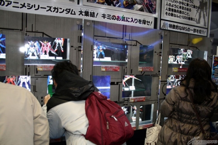 現在好評販售中的歷代鋼彈模型也在此展示,不管是小孩還是家長都沉醉其中。