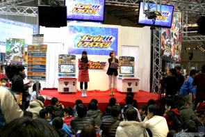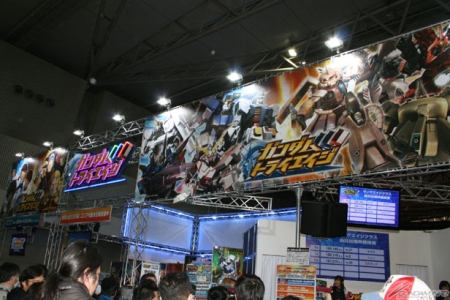 好評稼動中的電子卡片遊戲「GUNDAM TRY AGE」攤位,因為可以免費試玩,人龍排得超長!還在這邊舉辦了首次的全國大賽舞台活動。