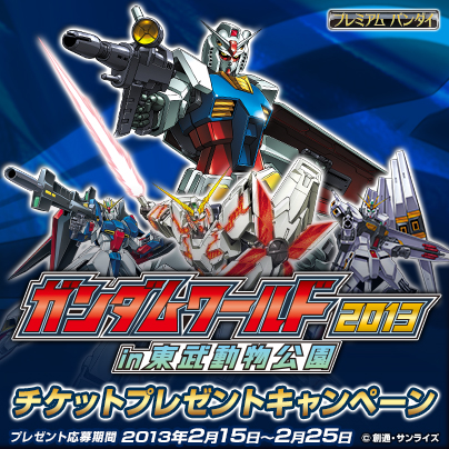 在BANDAI官方購物網站「PREMIUM BANDAI」上,為紀念「鋼彈世界2013 in 東武動物公園」自3月2日起開始舉辦,開始入場門票贈送優惠活動。