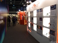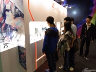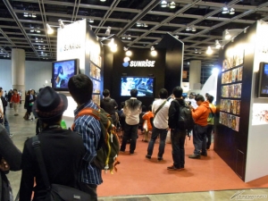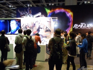 ▲SUNRISE的攤位上,以「機動戰士鋼彈UC」為中心展示了「TIGER&BUNNY」、「CODE GEASS 亡國的AKITO」等等的最新作。播放episode 6「宇宙與地球」PV的螢幕前有許多粉絲駐足觀看。