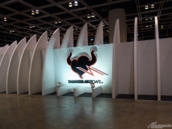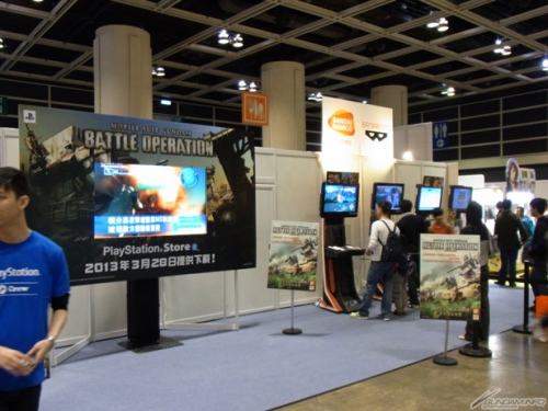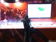 ▲在NAMCO BANDAI GAMES的攤位上,設置了從3月28日起在香港・台灣・新加坡開始服務的PS3版専用網路遊戲「機動戰士鋼彈 激戰任務」試玩機台!