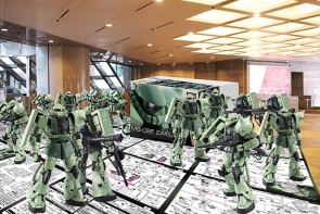 展期內,以全高約6m的1:3「鋼彈」和「夏亞專用薩克」為首,還有以鋼彈模型「RG系列」外型來製作的20台1.8m「薩克」、全長10m的巨大「白色基地」等大型展示登場,會場中將清一色都是鋼彈。