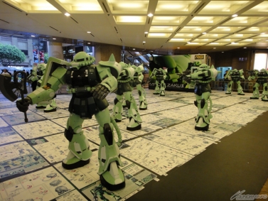 會場中,以全高約 6m 的1:3「鋼彈」和「夏亞專用薩克」為首,還有根據鋼彈模型「RG 系列」的外型來製作的20台1.8m「薩克」等都在現場展出,清一色都是鋼彈。