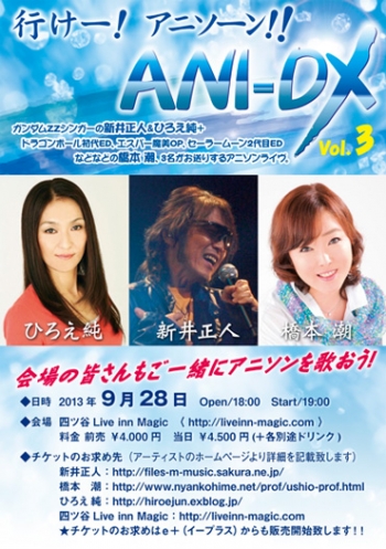 以鋼彈歌曲為中心的動畫歌曲演唱會「去吧!動漫領域 ANI-DX Vol.3」,9月28日(六)在東京・四谷 Live inn Magic 舉行。