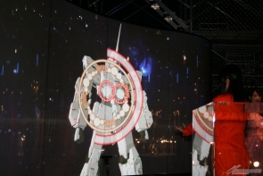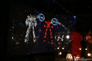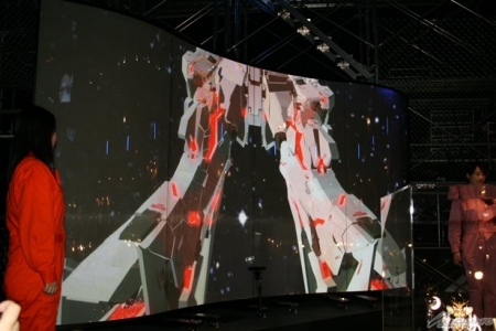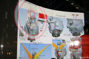 ▲在「接觸摸不到的超合金Kinesis」的展示中,「G.F.F. METAL COMPOSITE 獨角獸鋼彈」出現在大銀幕上。能夠藉由手部滑動讓它自由自在地回轉或縮放喔。