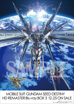 本次發送的「機動戰士鋼彈SEED DESTINY HD REMASTER Blu-ray BOX 攻擊自由鋼彈 插畫卡」,使用的是由擔任本作的總機械作畫監督・重田 智全新繪製、充滿魄力的最新主視覺圖。