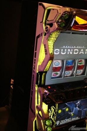 「吃角子老虎機動戰士鋼彈」,機台上下皆裝有大型液晶螢幕,配合活用最先進的CG技術,呈現出原作厚重的故事來。玩家可以隨吃角子老虎機展現的魄力戰鬥與許多名場面,充分體驗至今沒有體驗過的壯大世界觀,不只是吃角子老虎粉絲,連動畫粉絲等各種領域的玩家也可以體會到其中樂趣。