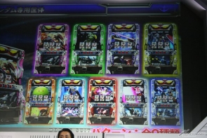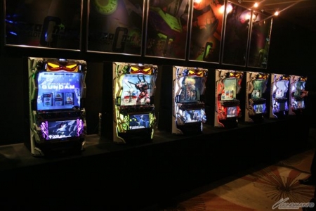 會場内準備了大量實機,可以實際試玩「吃角子老虎機動戰士鋼彈」。那麼就來報導試打情形吧。
