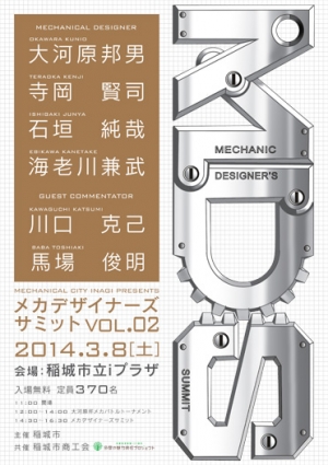 繼去年度「Vol. 1」舉辦的本次活動,由現在居住於稻城市的機械設計師大河原邦男老師所主持,並請到同為機械設計師的 寺岡賢司老師、石垣純哉老師、海老川兼武老師等豪華來賓登壇。此外特別請來了BANDAI HOBBT事業部的川口名人和馬場俊明先生作為來賓講解者,以機械設計的魅力和困難,還有作為設計師的執著與立場為主題,展開一連串的座談會。