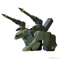 寺岡: | 驚異薩克是第一台機體,主要的工作是設計背包,但在商品開發上會有許多的限制而非常辛苦。花蝶邱貝雷的臉一直無法決定。個人是認為永野護老師筆下的邱貝雷的臉很棒,但是只要臉跟肩膀附近不做改變,以商品上來說就不會讓人覺得有什麼不同。另外在畫面上也有許多特寫,為了改變機體給人的印象所以採用了現在的設計。 K9的背上加上狗(K9鬥犬背包)的想法是由馬場先生提出的。一開始我被要求說要弄得跟真的杜賓犬一樣(笑),但最後則決定採用有點像四腳戰車般的設計。 |