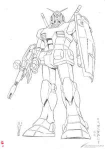 在這邊可以看到部分企劃提案過程中所繪的部分人物及機體草稿設計。可以看到人物初期設計跟完成後形象不同的鋼彈原案。當初構想的鋼彈大小全長約為3公尺,但是後來變更為18公尺。在定稿出來前經過了許多的修正。