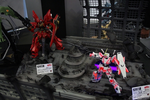 ▲「鋼彈UC」的場景專區,重現了在拉普拉斯和新安洲的戰鬥及在迦樓羅上演的兩台獨角獸對決等場面,以ROBOT魂重現各章節名場面!
