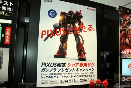 「PIXUS限定 夏亞專用薩克 鋼彈模型好禮大放送」,也在現場展示了「MEGA SIZE 夏亞專用薩克II CANON PIXUS特裝型」實物!