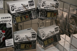 ▲COSPA攤位上除了有販賣許多鋼彈產品外,還有進行「薩克肩刺裝甲包夏亞専用Ver.」和「吉翁公國軍 血型PVC徽章」的搶先販售喔!