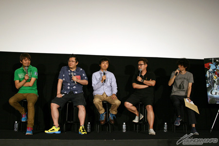 當天有擔任本作角色設定的吉田健一、擔任機械設定的安田朗和形部一平、擔任設計工作的コヤマシゲト和SUNRISE的小形尚弘製作人登台。