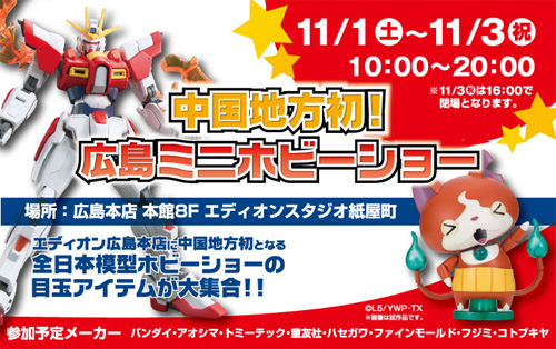集合了在中國地區首次展出最新模型產品的「廣島迷你模型展」,11月1日(六)至3日(一)3天,將於「EDION廣島本店 本館8樓特別會場」舉辦。