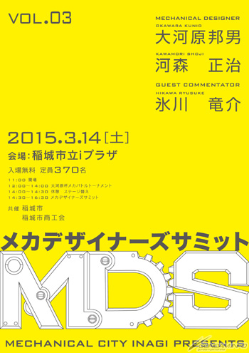 由動畫業界機械設計師的先驅者,大河原邦男所主持的座談活動「MECHANICAL CITY INAGI PRESENTS 機械設計師高峰會Vol.3」,3月14日(六)在東京都・稻城市立i廣場舉行。