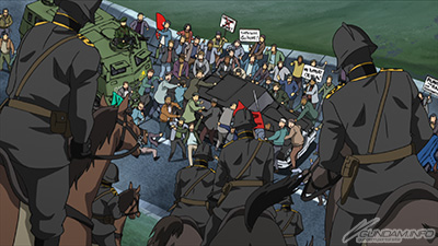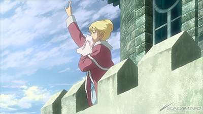接著是安彥總監督也讚不絕口,卡斯巴爾和阿爾黛西亞乘坐鋼坦克離去的鏡頭。描繪出這裡親子離別情緒的是在『機動戰士鋼彈UC』也相當活躍的茂木信二郎。