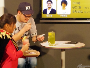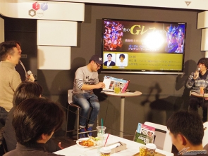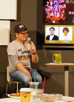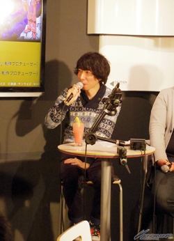 兩位製作人首先打過招呼後,因為正逢「夏亞・阿茲納布爾祭典」期間中,所以谷口點了「德茲爾・薩比~抹茶&綠茶碳酸酒精飲料~」、小形點了「克勞蕾.哈蒙~琴酒&紫羅蘭香甜酒基酒~」。和觀眾一起乾杯揭開座談會的序幕。