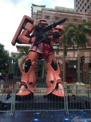 ▲全高6m的「鋼彈」和「夏亞専用薩克」挺立於新加波!