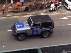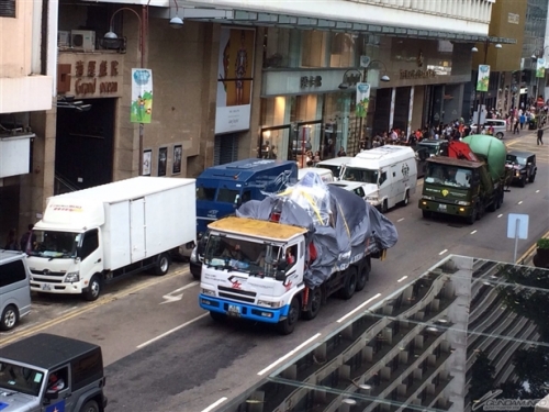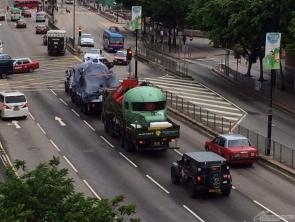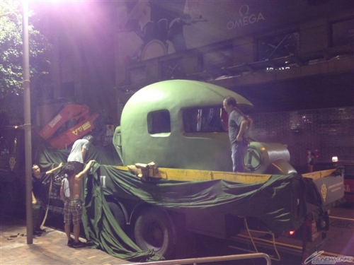 ▲拖板車前後跟隨的是特別款式的車輛!