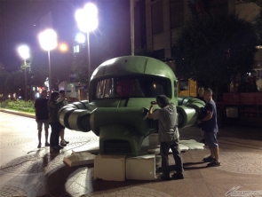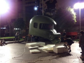 將抵達現場的巨大薩克頭像完成最後組裝。全高約有3m!
