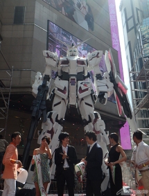 本活動亮點之一的獨角獸鋼彈立像,雖只有1/3比例,魄力仍然驚人!有許多入場觀眾都開心地拍攝紀念照。