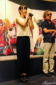 大河原老師表示「我在『科學小飛俠』出道以來,今年邁向了第43年。雖然動畫是共同作業,而僅擔任其中一個環節的我竟然可以舉辦展覽會,真的是職業生涯中相當光榮的一件事,心理覺得非常地感謝。這次的展覽會展示的是從1972年開始追趕著時代,如果各位能有覺得像是回到小時候般的享受展覽的話,我會覺得非常的開心」