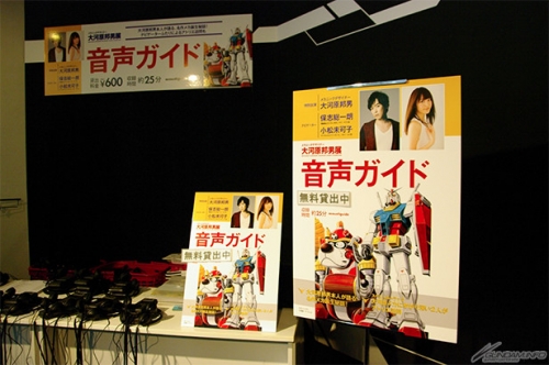 保志總一朗「我第一次飾演主角是在『銀河漂流VIFAM 13』這部作品,當時對自己能坐上小時候就憧憬的機器人感到非常的感動,『機動戰士鋼彈SEED』時也受到大河原老師設計機體的照顧,接著現在還可以參與這個展覽,之地感到非常的光榮。語音導覽是以和我原音相近的聲音所錄製,其他的地方應該沒什麼機會聽到,請務必一邊感受大河原老師的悠久歷史,一邊享受語音導覽」