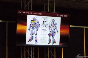 接著開始介紹機體,BANDAI HOBBY事業部的川口名人擔任特別來賓登場。被問到關於動畫本片中登場機體的問題,回答到『就全体印象來說機體很帥,種類也很多』。
