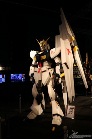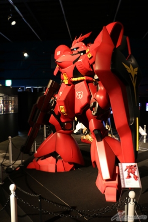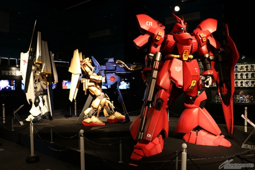 ▲進入會場1/10比例尺的「ν鋼彈」、「沙薩比」、「百式+MEGA火箭 巨砲