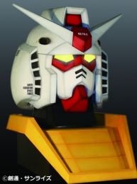 實物大RX-78-2 鋼彈頭像[左]、夏亞専用薩克頭像[中]、獨角獸鋼彈駕駛艙[右]