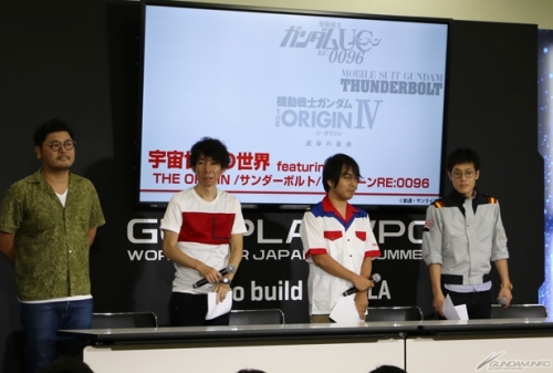 這場座談會的主題為「宇宙世紀的世界featuring THE ORIGIN・雷霆宙域戰線・UC RE:0096」,邀請到『THE ORIGIN』谷口理製作人、『雷霆宙域戰線』以及『UC RE:0096』小形尚弘製作人、BANDAI HOBBY事業部内田 巧、福田瑞樹等人登台。主持人由奥谷 楓擔任,以宇宙世紀作品為中心討論最新情報及鋼彈模型相關的話題。