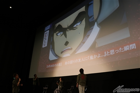 再來還問到接下來要上映的本篇第14話以後的內容,「這個部分請各位觀眾一定要多多關注」的部分,内匠先生提到重鍛型智魔鋼彈首次登場的場面中,自己的台詞,而河西先生是希望大家可以特別關注魚登場時,昭弘的「他正盯著這邊看」這句台詞。村田先生則提到,本篇中沒有太多對話的昭弘和西諾,因為要進行MS的模擬戰,才第一次好好地對話這部分感到印象深刻。