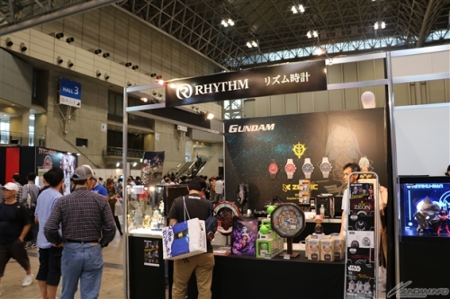 ▲RHYTHM時鐘攤位上,有人氣商品的會場限定價格販售以外,還有預定在今年11月發售的鋼彈官方手錶的特別參考展示!