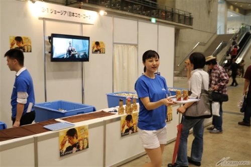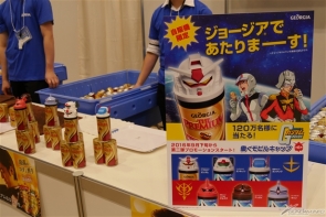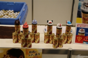 ▲GEORGIA攤位上展示「機動戰士鋼彈 工作的MS瓶蓋」第二彈的告知和獎品,還有GEORGIA的試喝區!