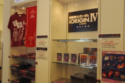 電影院除了有販售初回限定版「機動戰士鋼彈 THE ORIGIN IV Blu-ray Disc Collector’s Edition」及主題曲「在宇宙的彼端」劇場版CD、劇場限定鋼彈模型「HG 鋼加農最初期型(鐵騎兵中隊機 隊長機)」等各種週邊外,還有發送六日限定的2款入場者贈品「安彥良和總監督繪圖迷你簽名板」,第一週為週一至週五「鋼彈模型用特別貼紙(聯邦泛用ver.)」、第二週的週一至週五為「第4話35mm膠捲片」。