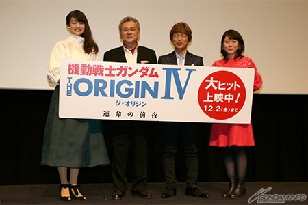 即日起至12月2日(五)為止兩週期間內舉辦特映會的『機動戰士鋼彈 THE ORIGIN IV 命運的前夜』,正在實施由製作團隊・卡司陣容至全日本上映電影院的舞台問候,今天11月27日(日)的舞台問候在東京・TOHO影城日本橋進行。