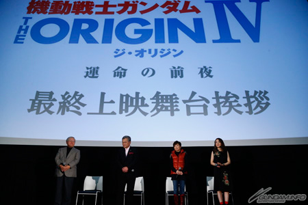 『機動戰士鋼彈 THE ORIGIN IV 命運的前夜』特映會從11月19日(六)開始在全日本15間電影院上映2個星期,最後一天12月2日(五)於東京・新宿piccadilly舉辦了最終上映舞台問候活動。