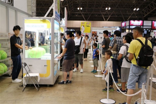「夾娃娃機專區」,想要得到哈囉的超大尺寸玩偶的粉絲們大排長龍!