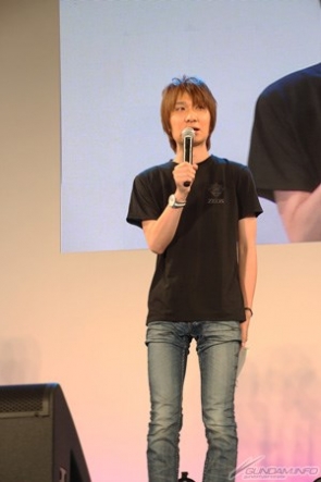 在開場的問候時,前野先生就表示「下次的目標是搭上可變型鋼彈!」,表達出了自己對鋼彈的喜愛,也令會場響起一陣笑聲。